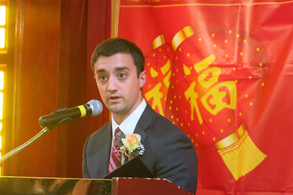 伊州联邦参议员马克科克获华联会颁发2016“社区贡献奖”,图为马克科克参议员特别代表领奖