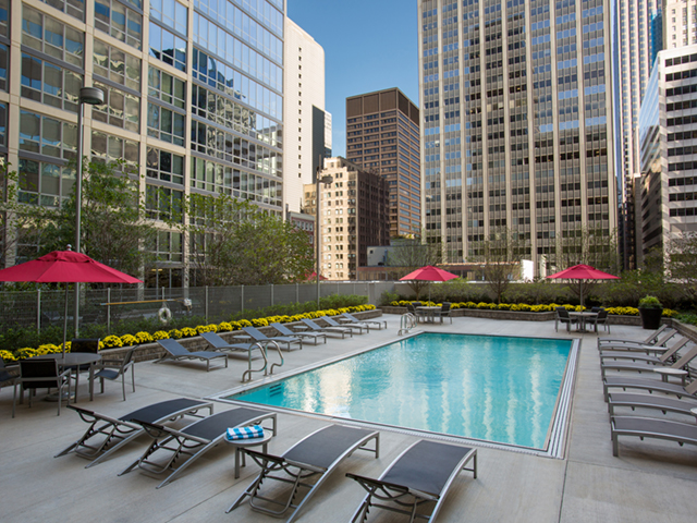公寓配有高级设施和服务,14楼屋顶泳池、烧烤架,室内健身房,每周两次免费瑜伽课程,带壁炉小型图书馆,电脑和打印机,还有高级台球室、筹码桌。24小时security,快递邮件通知,干洗服务,免费咖啡、茶,时常有免费美食美酒party。