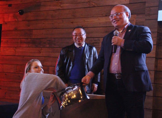 美中商业协会常务副主席吴高林慷慨的将所中奖品送给其他嘉宾再抽一次的机会