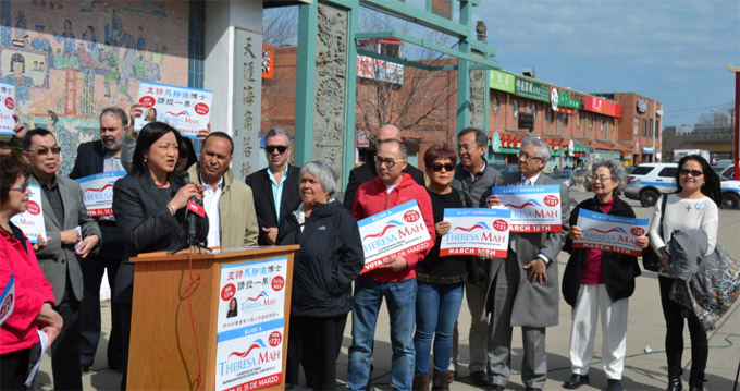 芝加哥侨学网报道】伊州国会议员古铁瑞茨(Luis Gutierrez),与芝加哥华人社区领袖3月8日在中国城举行新闻发布会,为马静仪竞选伊州议会第二选区众议员造势。古铁瑞茨再次公开声明,支持马静仪竞选。华裔社区领袖们则呼吁大家动员第二选区的华裔选民积极投票,让马静仪成为伊州议会首位华裔议员,共同创造华人参政历史。