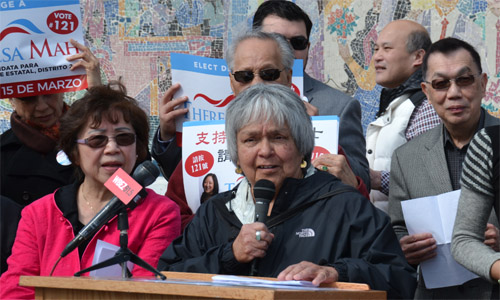 芝加哥墨西哥裔著名社区领袖卡门维拉斯奎茨(Carmen Velasquez)也出席了新闻发布会,并呼吁投票支持马静仪。古铁瑞茨则强调,卡门维拉斯奎茨与黄罗瑞雄,都是服务拉丁裔与华裔社区40多年的社区领袖,她们同台支持马静仪,就是拉丁裔、华裔移民社区团结一致的最佳例证。