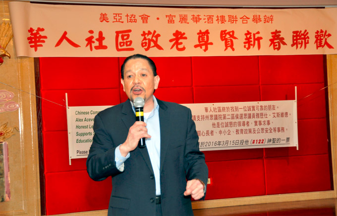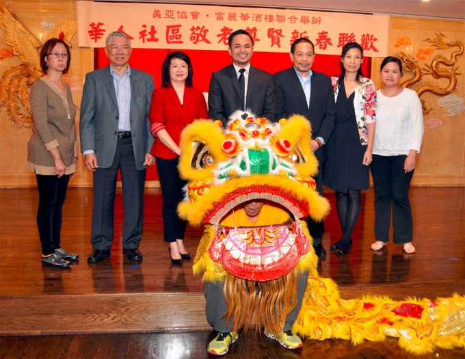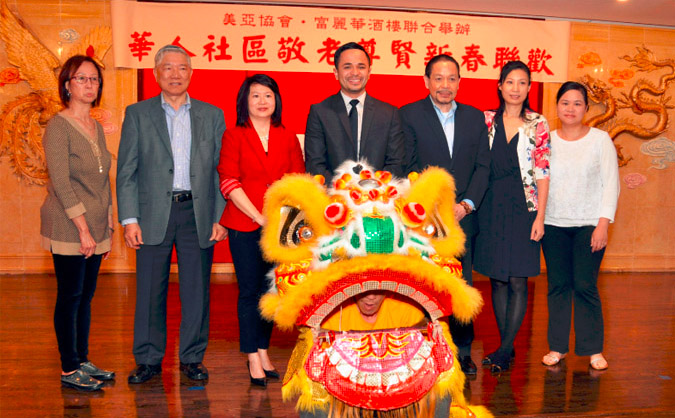 芝加哥侨学网报道】丙申年华人社区敬老尊贤新春联欢晚会于3月8日晚在富丽华酒楼隆重举行。此次活动由芝加哥美亚协会主办,富丽华酒楼赞助,现场近四百位老人与华人代表马森柱、陈伟民、黄婉娴、陈羡韶等共贺猴年新春。伊州议会第二选区众议员候选人雅历仕(Alex Acevedo),及现任众议员爱德华艾斯维德(Edward Acevedo)也来到现场开展拜票工作。