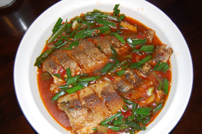 做法:油煎至鲥鱼皮焦,两面涂郫县豆瓣酱,放大蒜、姜,加开水,慢火炖15分钟左右,酌情放一点盐,起锅前放葱花、韭菜即可。