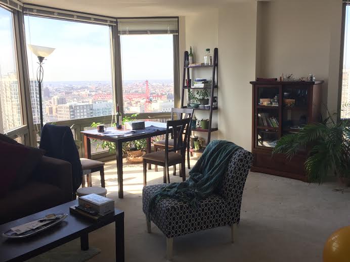 房子的月租金1700+, 总面积大概在900+ square meter,客厅和房间都有巨大的落地玻璃窗,采光非常棒!,而且客厅有一面窗可以看见密歇根湖!!!另外除了电费外,公寓免费提供水和暖气,所以每月花费大多不超过50d。