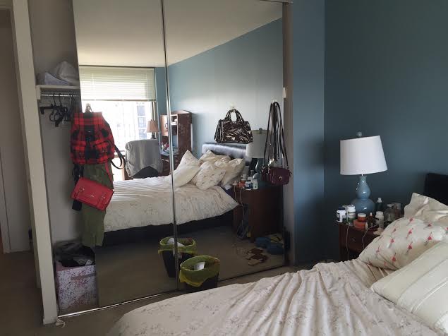 这是房间里储藏柜,是一面巨大的落地镜子,方便女生试衣服~~