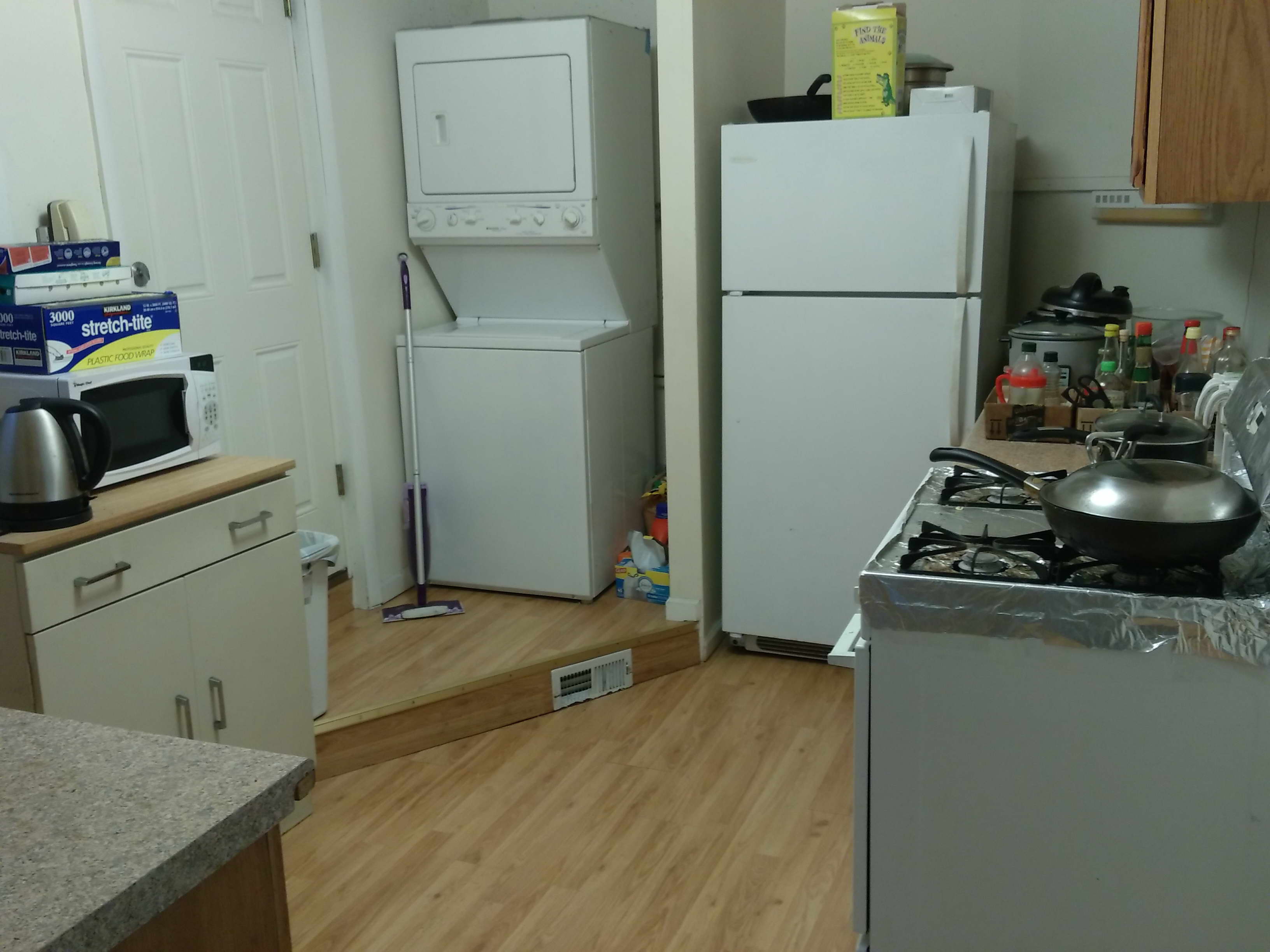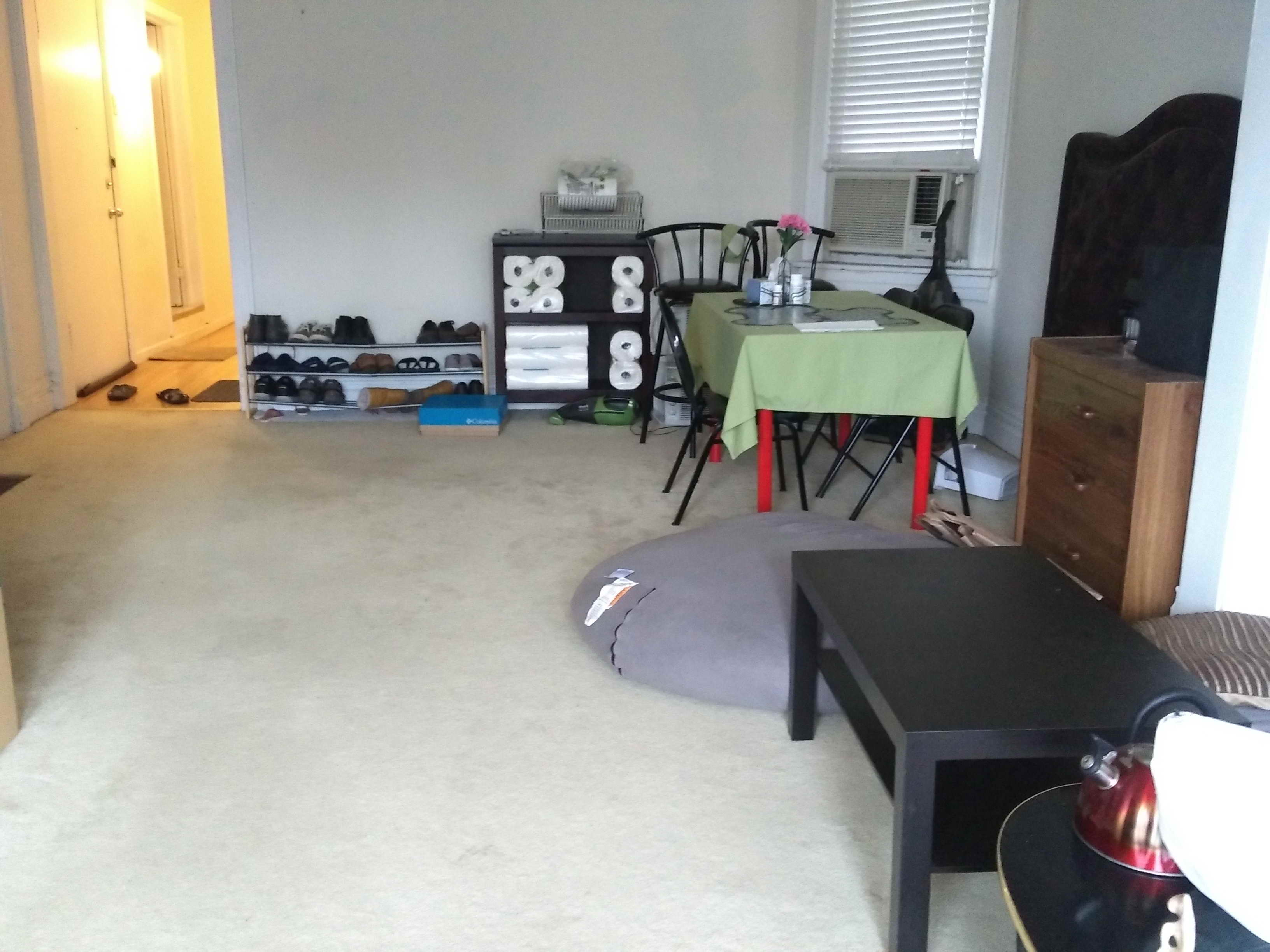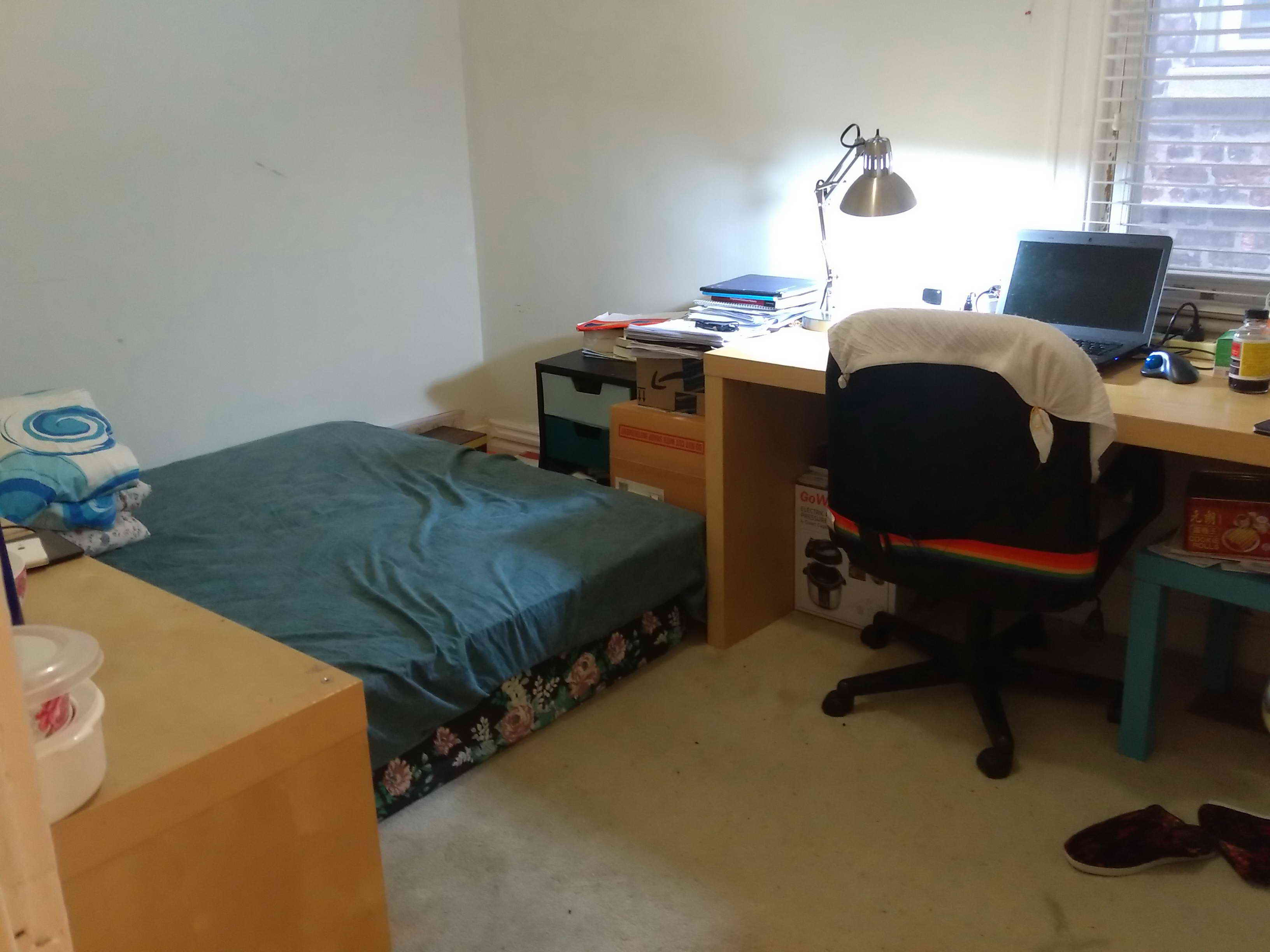 锅碗瓢盆等家居生活用品齐全,房间内有Queen size的床垫和Box,大书桌,床头柜,柜子,电脑椅,台灯等,可拎包入住;房内家具可低价转让。