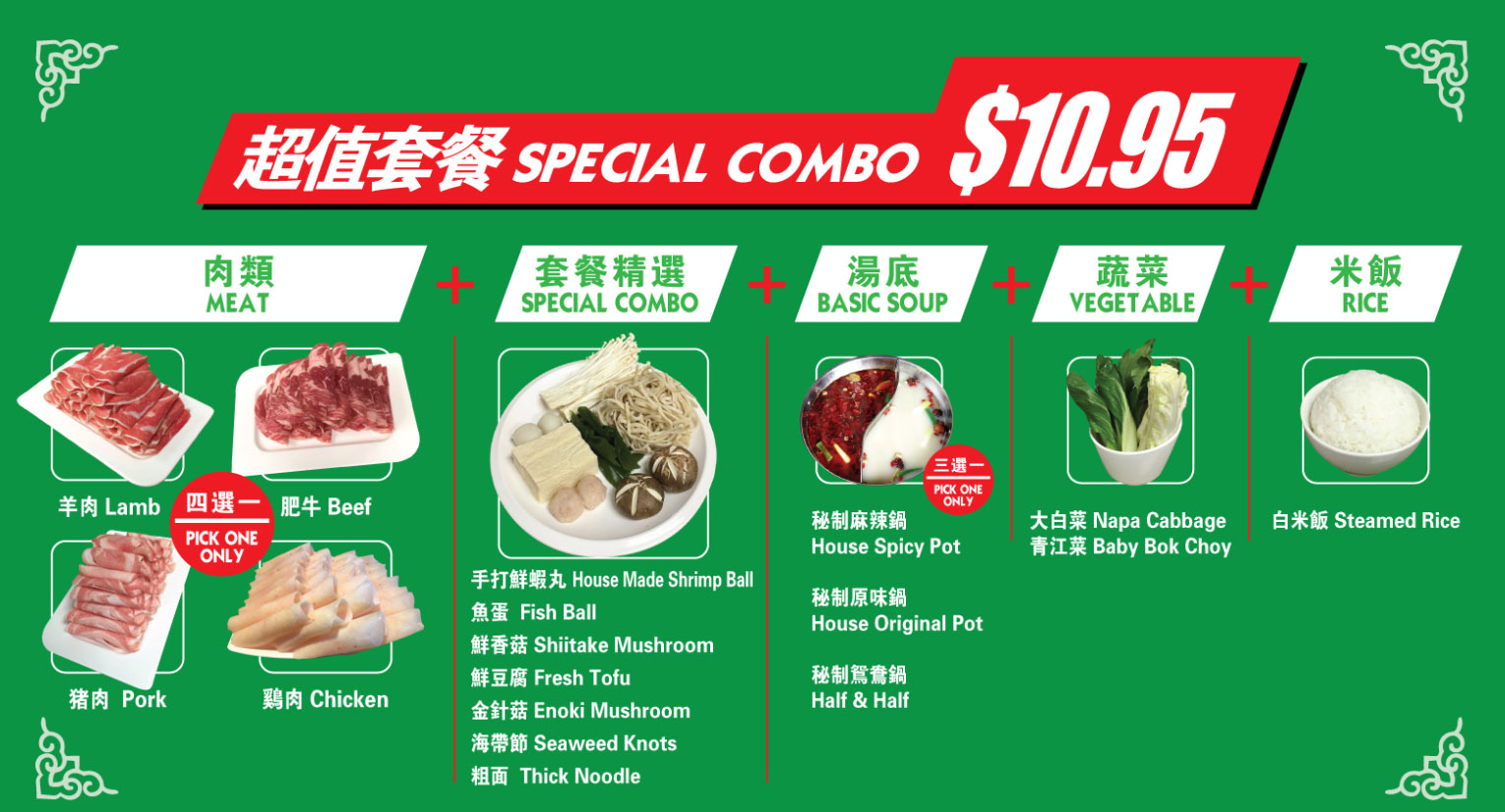 小肥羊超值套餐 $10.95