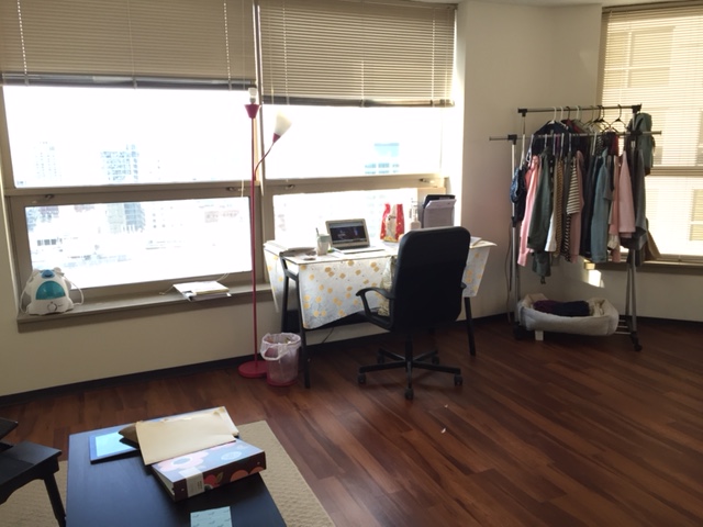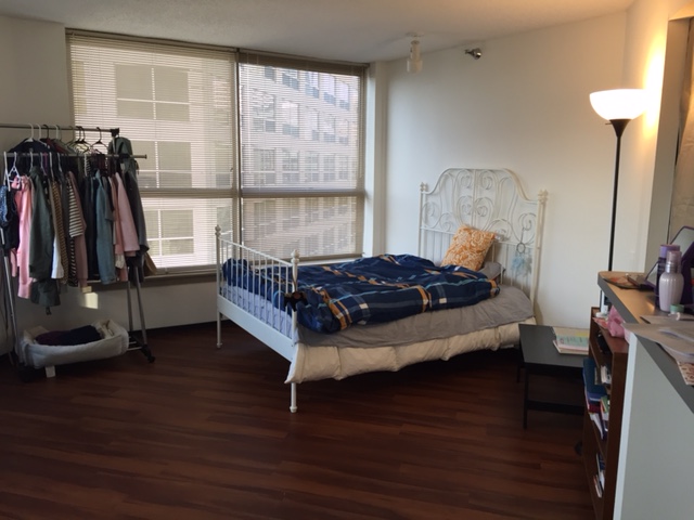 再介绍一下两位室友的情况。大卧的学姐已经工作,明天早出晚归。小卧是一位IIT法学院的妹子,平时也基本呆在学校里。两位室友平时都很少用厨房,所以也不会对住客厅有很大的影响。。另外现有的家具,主要是床和床垫,书桌和老板椅,沙发,可以成套sale如果需要的话。
