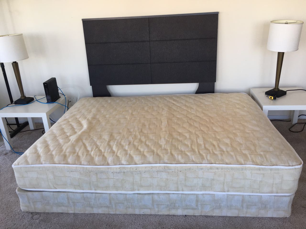 LM 400 出售 queensize 床 包括 床垫 box 和床架(没在照片里) 以及床头板 价格100刀 可小刀 2 个小方桌 5刀一个 方桌上的台灯 15刀一个(质量好 底座上带插座) 屏风 10 刀 皮沙发 40刀 面包机 10刀 omelet maker 10刀 插排 5 刀一个 有好几个 三层小柜子 10刀