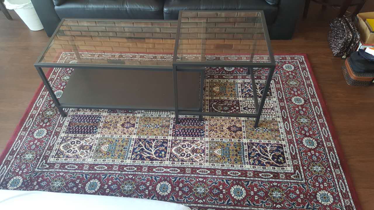 全套家具甩卖啦。全部家具都是今年1月份购买,9成新。宜家Queen Size床垫床架(带床头),茶几,小地毯,边几两个,吃饭/学习两用小桌及两把椅子,锅具三个,电吹风一个,另有两盆绿植和其他小礼品全部赠送(包括电子秤、保洁工具等)。详情请见配图,需自提,7月底提货。有兴趣请留言,或微信搜索:WystanLI。