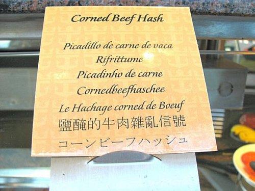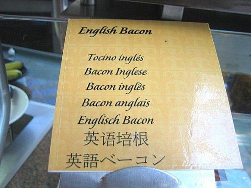 这份菜单上有着多国语言的翻译,有网友说,这根本就是Google翻译再版,例如英式烟肉(English Bacon)被直译为「英语培根」,而全脂牛奶(Regular Milk)则被翻成「规则牛奶」,绿豆汤(Green Spilt Pea Soup)变成「绿分裂豌豆汤」。
