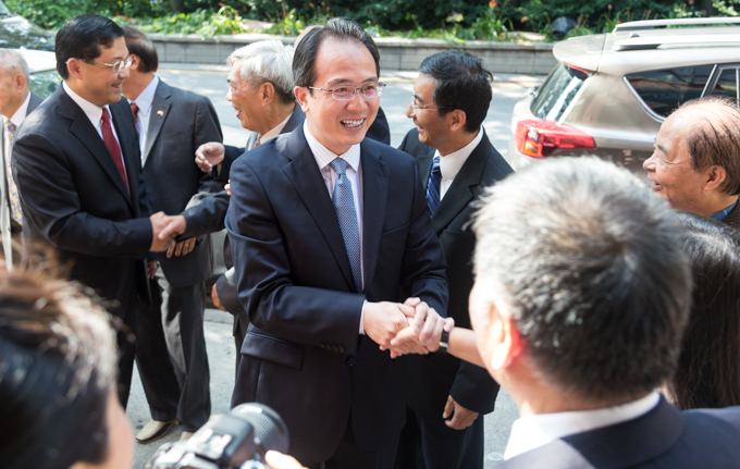 芝加哥华联会作为洪磊总领事新上任以后对外活动的首站,对芝加哥侨界有着重要的意义。在欢迎会上,华联会主席王兴无对洪磊领事的到来表示了热烈的欢迎。他有趣地说到:“洪总的到来是我们芝加哥侨界盼望已久的。在很早以前我们便猜出来是您将出任芝加哥总领事。能这么快猜到不是因为我们太聪明,而是洪磊总领事太有名。不愧是“明星总领事”。”