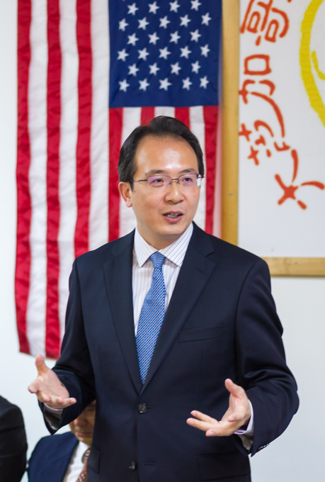 洪磊总领事表示,“今天非常高兴来到华联会。将首次对外活动选在这里是想通过芝加哥华联会这个非常重要的侨社向芝加哥地区的所有华侨、华人报到。”洪磊指出,我来芝加哥履新就是要展开推动中美关系,促进领区和中国的大合作大交流,同时服务侨社、服务留学生的使命。洪磊总领事高度地肯定了华联会为促进中美关系与文化交流所作出的贡献。并希望华联会可以继续与芝加哥总领事馆一道为推动中美关系、中美经济与文化的交流以及促进祖国统一大业而努力,做中美合作的桥梁。最后,洪磊总领事亲切地说:“今天来到华联会就算是认门了。以后我们领事馆会与华联会一如既往地保持密切的沟通与协调。共同为我们的事业做出更多的贡献。”