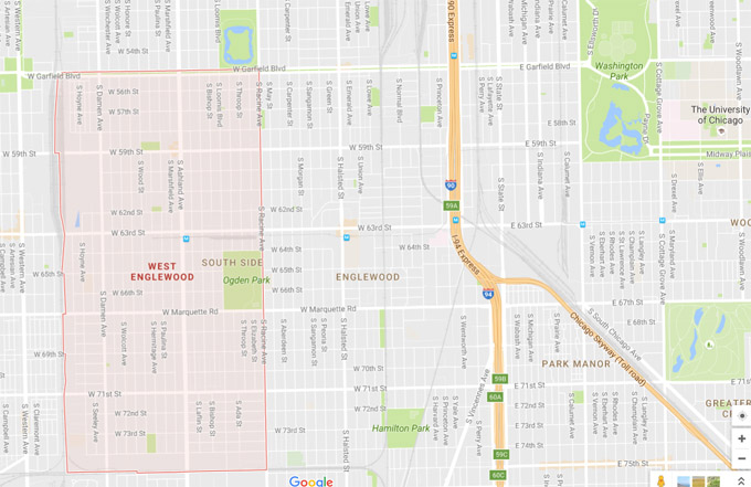 城南的West Englewood 黑人区,与臭名昭著的Englewood 一起,都位于90/94高速交汇处