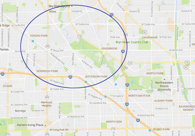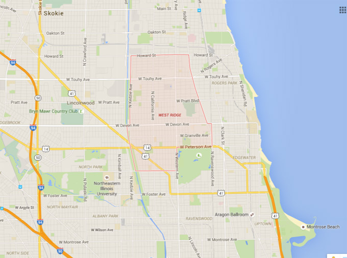 城北,北起Howard St, 南至Peterson Ave, 东起 Ridge Blvd., 西至Kedzie Ave.。