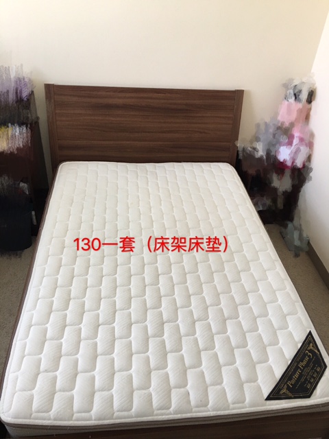 1.full size 床 一套床架+床垫 120刀,床架购于宜家,床头是倾斜的可以斜靠着,坐床上玩电脑看书很舒服。床垫软硬度合适睡觉舒服