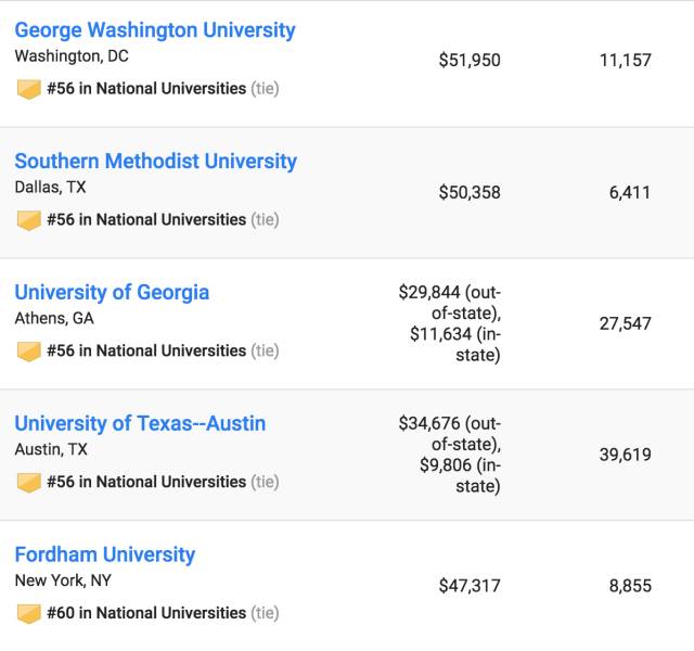 《美国新闻与世界报道》全美大学综合排名