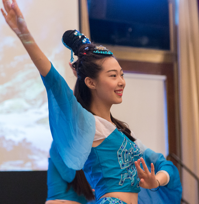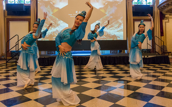 在接下来的文艺表演中。来自芝加哥地区九所不同高校的同学们为现场观众献上了多台精彩的演出。由芝加哥大学冯心怡同学带来的独舞《雨中花》,清新优雅,同样中国味十足。IIT蝶舞墨韵舞团的舞蹈《楚云深》轻盈优美,向大家展示中国传统舞蹈的独特魅力。最后,芝加哥艺术学院的两位人气手Tom&Jenny演唱的歌曲《EmpireState of Mind》活力十足,惊艳全场。将整场晚会推向了高潮。