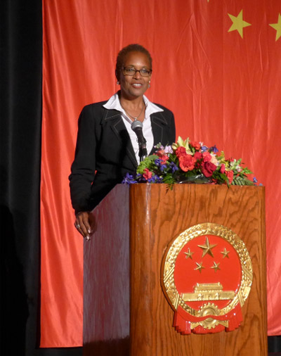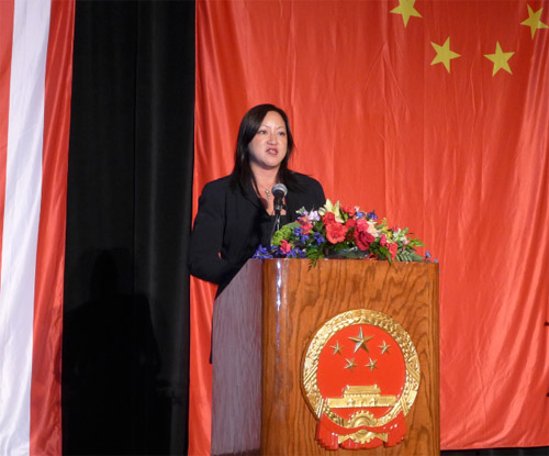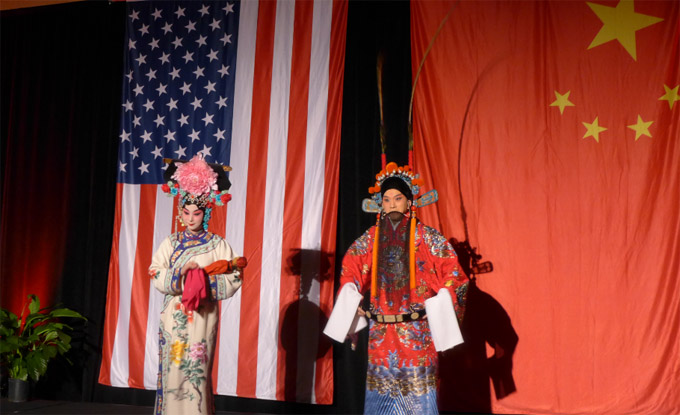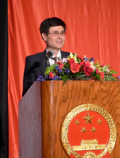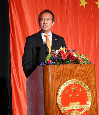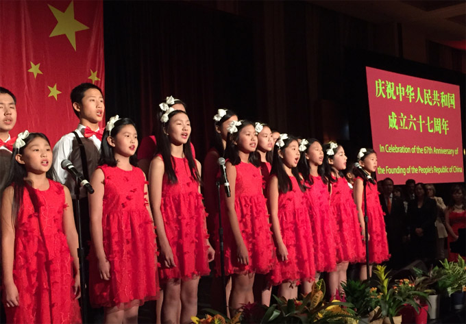 在演讲后的热烈掌声中,洪磊总领事与各界嘉宾共同举杯,为中国繁荣昌盛,为中美两国不断取得新成就,为中美两国人民友谊长存而干杯。在当天国庆招待会上,来自上海京剧院的艺术家为大家精彩演出,伊州大学香槟分校的中国留学生带来《万马奔腾》二胡双重奏,芝加哥东方艺术团,芝加哥佳音合唱团,知名歌剧艺术家童韬等文艺团体及个人,为国庆招待会带来精彩的文艺表演。 (图文: