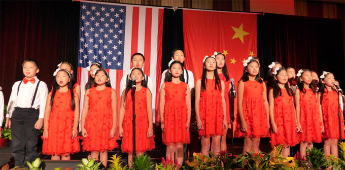 华裔小朋友们高唱中美两国国歌