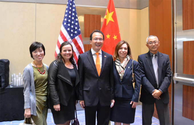 洪磊总领事与芝加哥培英美术学校校长李玛瑛合影