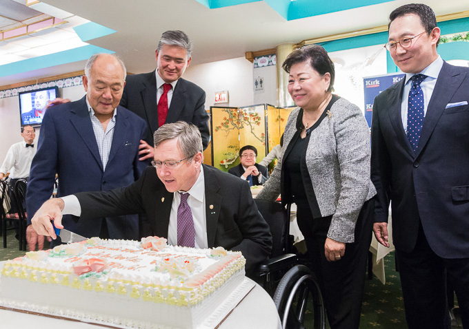 科克(Sen.Mark Kirk),10月6日来到位于芝加哥中国城内的翠亨村酒家,为其竞选连任造势。造势会邀请到了包括芝加哥地区华裔代表在内的多个不同亚裔群体代表的参与。马克 科克再次感谢了芝加哥亚裔社区尤其是华裔社区对他的支持。同时强调,将继续为促进芝加哥亚裔社区发展,加强中美合作做出努力。并承诺要将伊利诺伊州和芝加哥打造成北美“对华最友好”的目的地。伊州的未来属于亚裔!