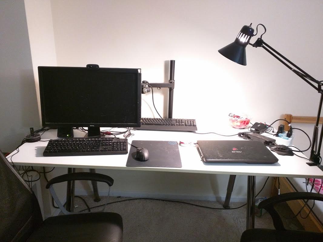 书桌约160cm*60cm,高度可调,非常结实。$20