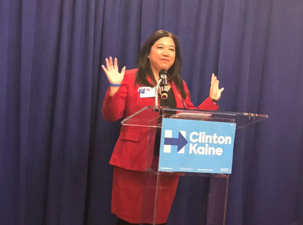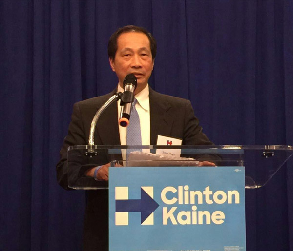 马森柱发表演讲,呼吁华人投票参政,支持希拉里