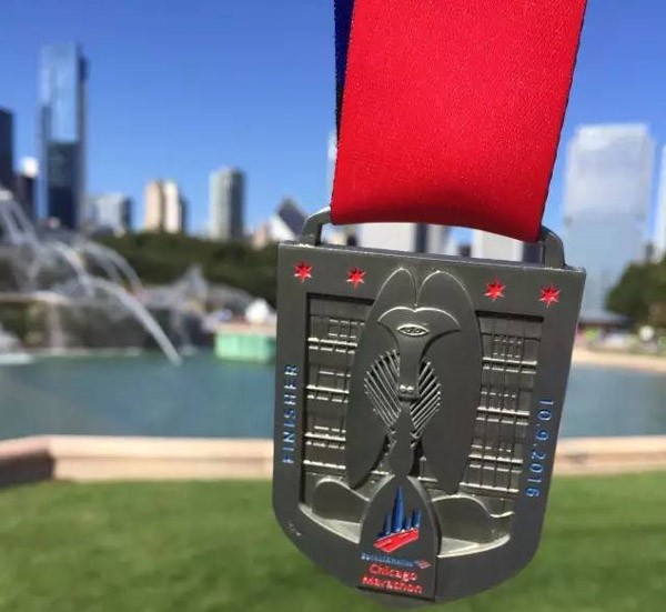 高碧波在2016芝加哥马拉松赛获得奖牌