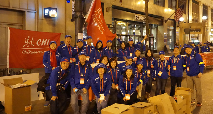 驰Chirunner华人跑团,为2016芝加哥马拉松赛组织华人志愿者队伍