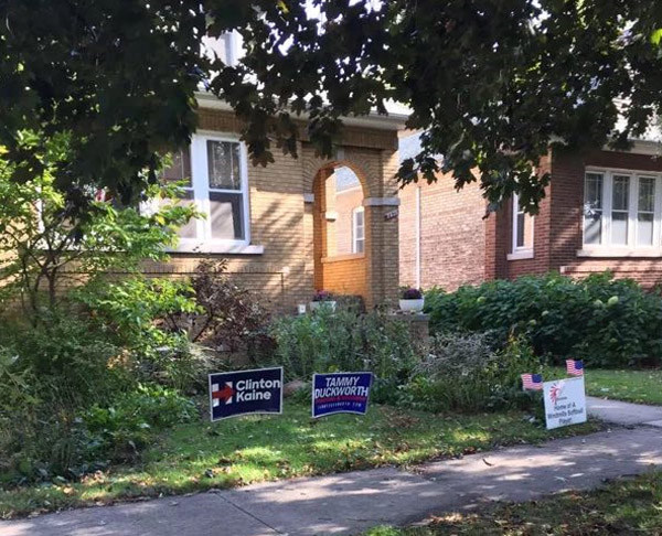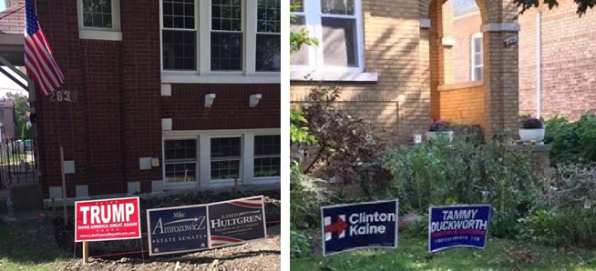 北美崔姐也住在博文镇,这个芝加哥西郊的小城镇,原来以东欧移民为主,2010人口普查结果显示目前的居民以墨西哥裔移民为主。北美崔姐在她家前院的草坪上,“大无畏地”插着川普标语牌,而她家对面的邻居,则插着希拉里标语牌,可谓两大阵营“门当户对”,总统选举选情的激烈,可见一斑。