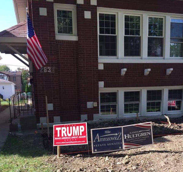 专职从事房屋改造出售与出租的“北美崔姐”,她的“工作车”前后都有支持川普的标语,她敢在自己拥有的七处出租房的门前草坪插山支持川普的标语牌。这七处出租房全部位于芝加哥西郊博文镇(Berwyn, IL),一个以墨西哥裔移民为主的社区,而墨西哥裔移民普遍支持希拉里的。