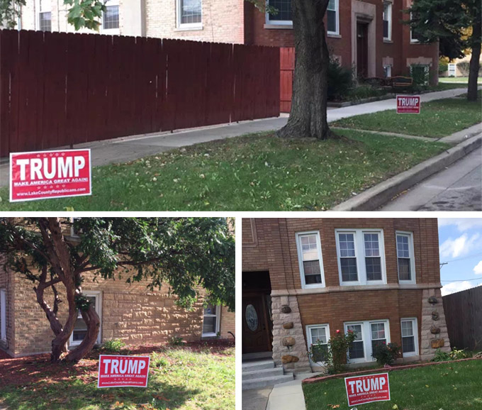 北美崔姐在自己打理的七处出租房插上13个川普标语,一天之内12个牌子不翼而飞
