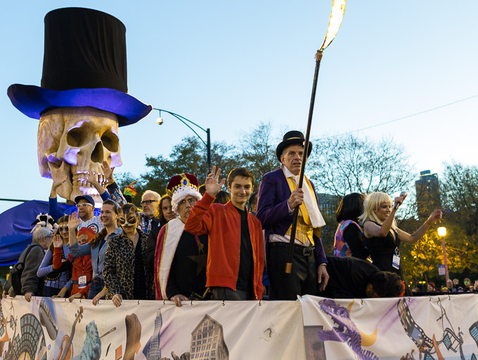 由华星艺术团派出的50名中国旗袍女郎,代表芝加哥华人社区亮相当晚的游行。这50名华人女性组成的游行队伍,身着不同颜色的中国旗袍,搭配万圣节气氛的斗篷与面具,手提充满东方神秘气氛的大红灯笼。在整个游行队伍中十分的显眼。整只游行队伍由四只可爱的“国宝熊猫“带队,紧随其后的50名旗袍女郎,伴随着中国风的流行歌曲翩翩起舞,尽显东方美,成为了当晚游行中最独特的队伍。