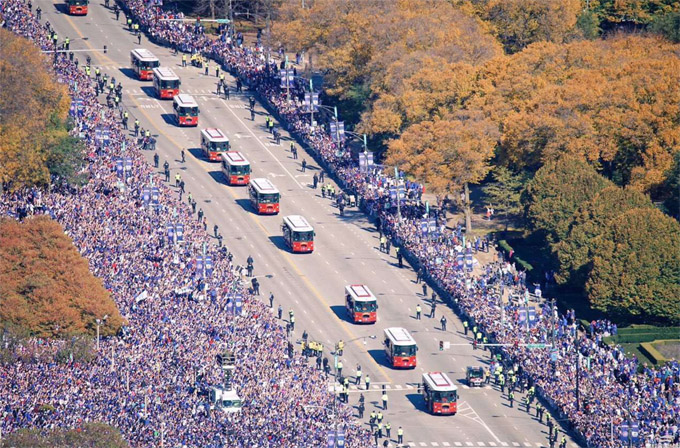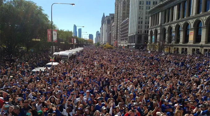 周五恰逢芝加哥公立学校无课,让众多家长可以带着孩子们为球队欢呼,芝加哥郊区、美国中西部地区的球迷,都在这一天齐聚在芝加哥。市政府预估观看游行与庆功集会的总人数约为500万,这也是一个史诗般的记录。