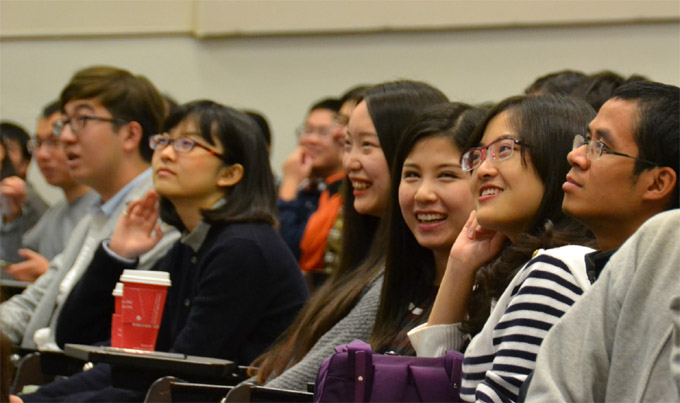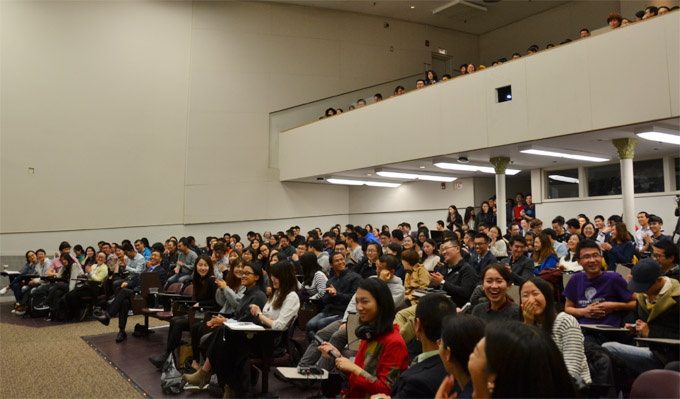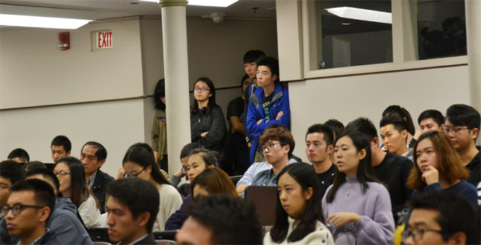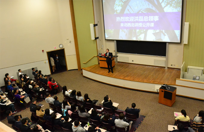 洪磊总领事的这堂公开课,是由西北大学中国学生学者联合会主办,是洪磊总领事访问西北大学的一个重要内容之一。公开课在西北大学Fisk Hall 礼堂举行,能容纳300人的礼堂爆满,除了西北大学中国留学生外,还吸引了芝加哥大学、芝加哥艺术学院、德保罗大学等芝加哥众多高校的留学生。