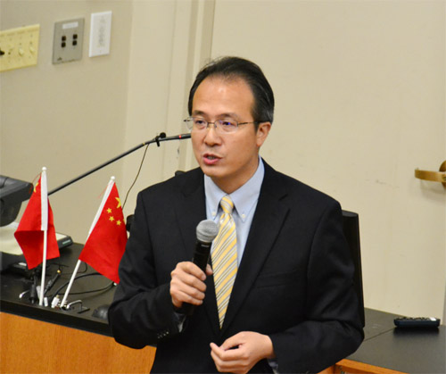 【芝加哥侨学网报道】中国驻芝加哥总领事馆洪磊总领事,日前给西北大学中国留学生上了一堂别开生面的公开课,洪磊表示,世界历史上十五六次的大国崛起与国际秩序变更,有十二三次都是通过战争解决,但中美双边构建的新型大国关系是以不冲突、不对抗为核心,共同做大两国的共同利益,这种新型大国关系会让中美两国受益,让全世界受益。
