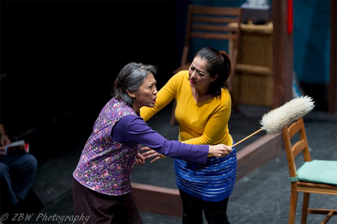 【芝加哥侨学网报道】芝加哥东方话剧团年度大戏《守岁》,11月5日、6日在芝加哥西郊连演三场,场场爆满,掌声不息。大年三十年夜饭,三代母女的家庭,两个男人的出现,各种矛盾的交织与爆发,都在浓浓的亲情中化解。东方话剧团演员们的倾情演出,让在场众多观众随着剧情欢笑与落泪。全程欣赏演出的洪磊总领事,给出“怎一个爱字了得”的精彩点评。