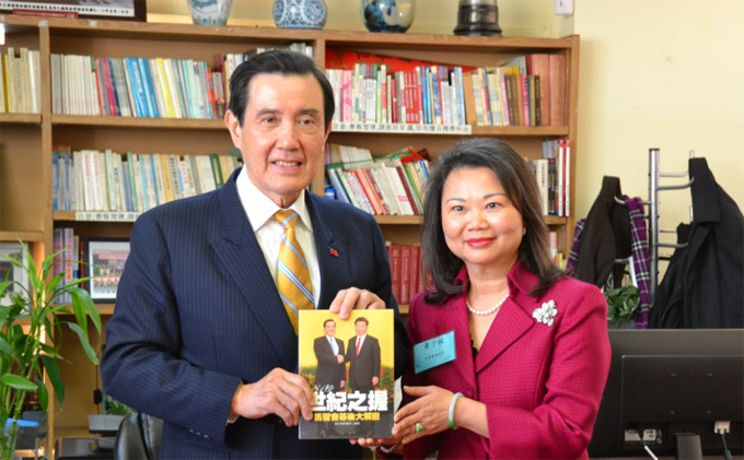 马英九向中华会馆主席黄于纹赠送“习马会”著作《世纪之握》