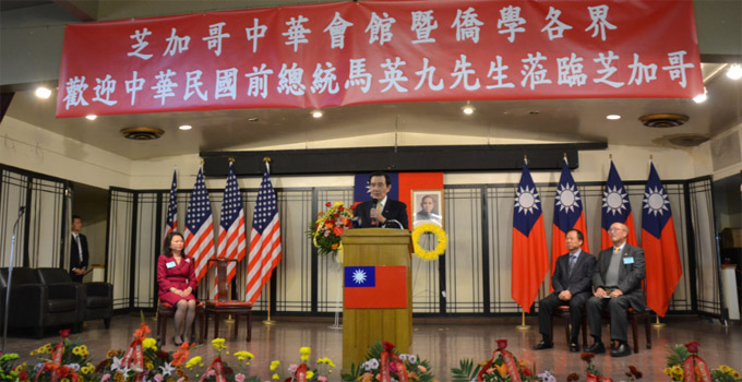 马英九在芝城中华会馆发表演讲