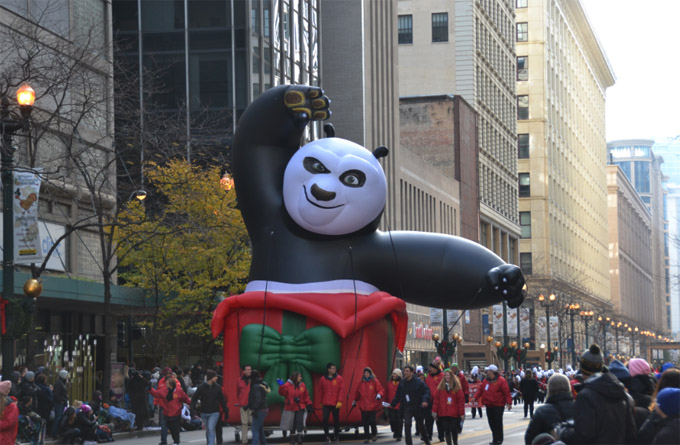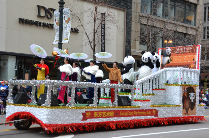 作为美国亚裔社区最大的族群,有着五千年文明传承的华人华侨,不仅不能缺席,而且要充分利用这个机会,向主流社会展示我们中华民族灿烂的文化。活跃在大芝加哥地区的东方艺术团,为参加此次的感恩节大游行,倾注了心力,以“突出中国元素,增添节日喜庆”为主题参加游行。东方艺术团的旗袍花车,京剧服饰表演,配以美国民众喜爱熟知的大熊猫,在浓郁的中国音乐声中,欢庆节日。