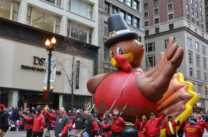 芝加哥感恩节游行源自1934年的Christmas Caravan大游行,当时美国正处在大萧条时期,为了鼓舞人民的士气,倡导节日精神而发起。此后,每年举办的感恩节游行成为芝加哥人欢迎年末佳节的重要公众活动,每年吸引的现场观众都超过40万人。芝加哥感恩节游行还是全美仅有的两个通过电视全程直播到千家万户的感恩节游行之一,全美逾七千五百万名观众可欣赏到游行的盛况。
