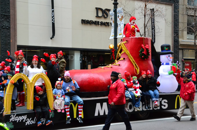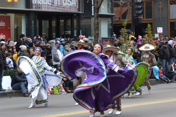 芝加哥是个有着移民传统的大熔炉和大都会。感恩节大游行更是各类文化的大展示:乐队、歌手、舞蹈、花车、气球、墨西哥裔妇女色彩斑斓的服饰,西班牙裔斗牛士的英姿,爱尔兰族裔少女的踏踏舞和小伙子响彻云霄的风笛,印度裔热烈的旋律和妖媚的舞姿,哈林环球篮球队、巴纳姆贝利马戏团、乔弗里芭蕾舞团、杰西怀特体操队,丰富的节目让长达三个小时的游行不冷场。