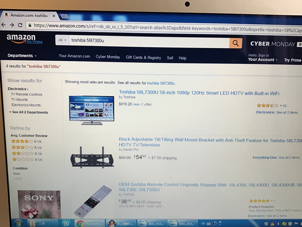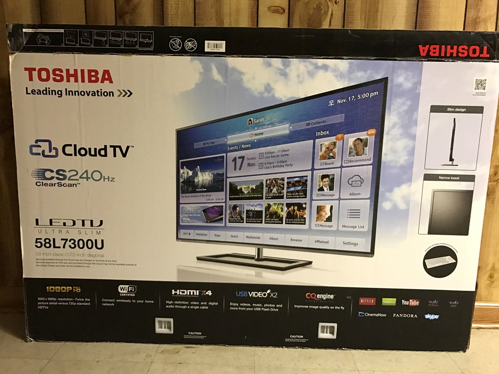 东芝58寸电视,九成新,可以直接把手机youtube上的视频转到电视播放。亚马逊目前售价900多,现380出售,有意者联系: 7734316080