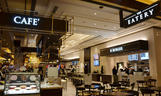 The Eatery位于马蹄铁博彩大厅一楼,共有四家高档餐厅,分别是Café, Fresh, H Burger和360 Pizza。顾客购买食物后,可以在开放式的就餐区域慢慢享用。