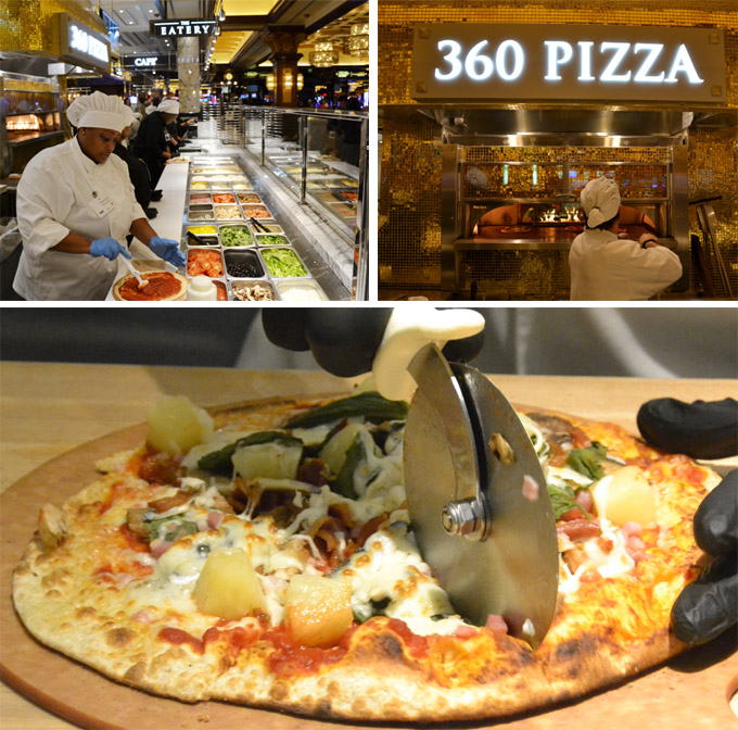 在The Eatery美食区,您可以非常方便地享用360 Pizza店新鲜美味的碳火烤披萨, H Burger用顶级食材制作的汉堡包系列,Fresh店提供的三明治、沙拉和卷饼,还有Café 提供的意大利百年经典咖啡Lavazza、款式众多法式美味甜点,让您美食、娱乐兼得。