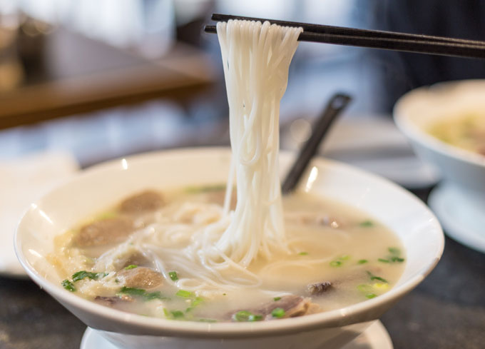 店里备有全套的磨浆机器和制粉机器,厨房人员每天提前三小时到店制作每天的新鲜米线,现磨米浆加工而成,口感QQ美味。 渔汤米线,可配秘制原味鱼汤、特色牛汤、冬阴功汤和麻辣汤,新鲜美味直击味蕾。
