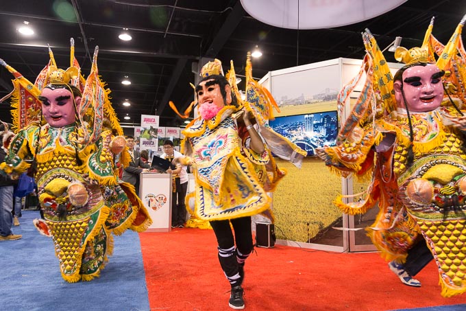 观光局纽约办事处主任张维庭则在现场高歌一曲。“请来看看这里的山水,请来看看这里的人民。台湾欢迎您。” 在开幕记者会的最后,台湾青少年文化大事协会还为现场观众带了精彩的电音三太子、舞狮与台湾原住民舞蹈等文化表演。憨厚可爱,又独具文化特色的电音三太子表演逗乐了现场许多观众。