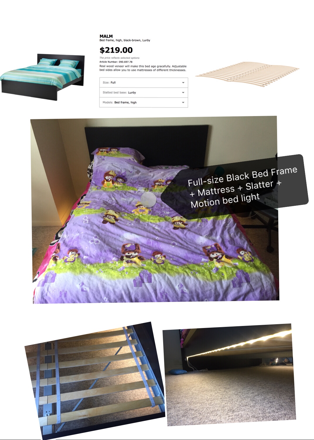 1. IKEA Full-size 床(含床架,床垫,床垫托,床底灯),原价共$300,现卖$150
