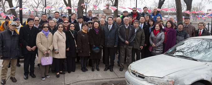 驻芝加哥台北经济文化办事处处长何震寰、处副处长陈琼玉、侨教中心主任王伟赞和中华会馆主席黄于纹,以及芝城安良工商会、洪门致公堂、协胜公会、芝加哥台湾同 乡联谊会、芝城同源会、梅氏公所、中国国民党美中支部、美中三民主义大同盟、芝加哥荣光会等侨团代表出席了当日的活动。